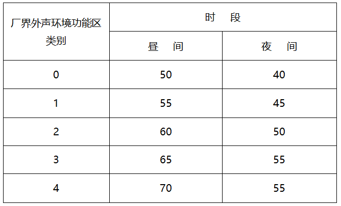 表1  工业企业厂界环境噪声排放限值                                       单位dB(A)