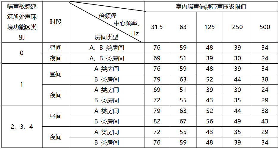 表2 结构传播固定设备室内噪声排放限值(等效声级)                             单位:dB(A)